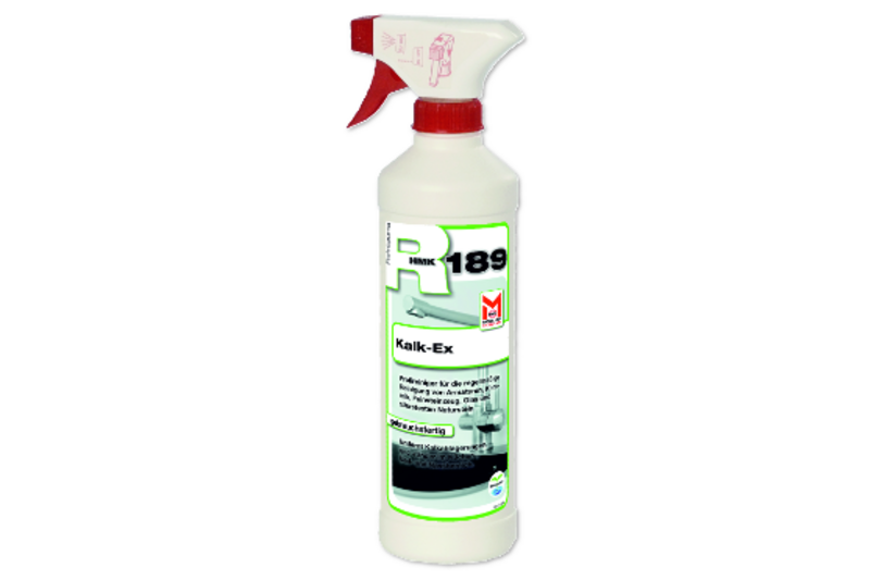 HMK R189 Kalk-Ex voor het verwijderen van kalkaanslag, kalkranden en vervuiling. Toepasbaar op geglazuurd en ongeglazuurd keramiek, glas en zuurbestendig natuursteen. Zeer geschikt voor toepassing in de keuken en badkamer. Oppervlakken met kalkaanslag worden weer stralend schoon.