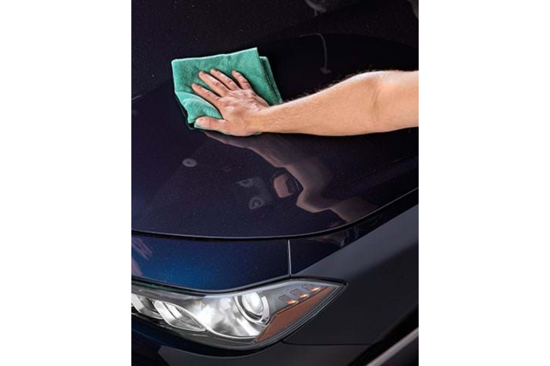 Draai de microvezeldoek om en veeg af met een hoogglansglans. Kan worden gebruikt op alle niet-poreuze buitenoppervlakken inclusief glas. Niet gebruiken op cabriokappen.